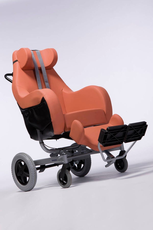 Dieser Cosychair kann durch die 12"/6"-Bereifung auch im Außenbereich benutzt werden. Die Sitzschalenpolsterung sichert die gleichmäßie Druckentlastung und erhöht den Sitzkomfort auch bei längerer Nutzung. Die Sitzkantelung lässt sich durch eine Begleitperson verstellen. Die winkelverstellbare Beinstütze kann auch vom Nutzer selbst stufenlos verstellt werden.